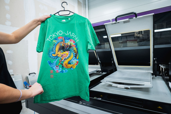 Tisk je mokrý do mokrého, textil není třeba trápit termolisem. Žádné lesklé otlaky kolem motivu jako u jiných technologií.